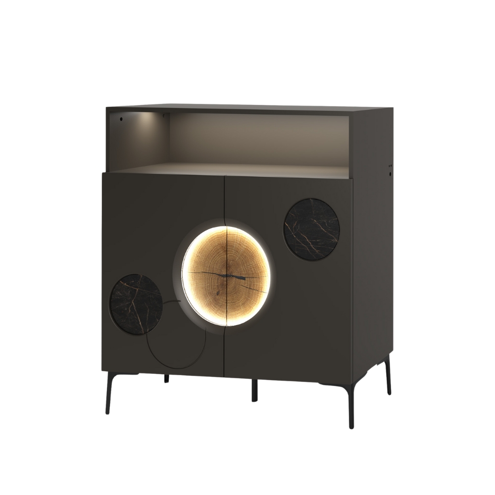 Idéal pour celles et ceux qui souhaitent une entrée qui respire, ce modèle allie la beauté du chêne et de la céramique à une silhouette aérienne. Sa niche ouverte permet de garder l’essentiel à portée de main tout en allégeant la structure, créant une respiration visuelle immédiate dès l’ouverture de votre porte. Grâce à l’éclairage LED optionnel en façade et dans la niche, votre entrée s’anime d’un jeu de lumière délicat qui révèle toute la poésie des textures naturelles.