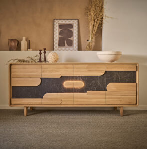Le buffet INTENSE à 4 portes est un véritable joyau pour les passionnés de mobilier au design épuré et naturel. Ce meuble sophistiqué se distingue par ses portes éclairées par une LED subtile, ajoutant une touche d’élégance à cette collection. Cette enfilade à la fois simple et remarquable ne manquera pas d’éblouir vos invités dès leur arrivée chez vous. Sa structure robuste et ses quatre portes spacieuses offrent un espace de rangement considérable pour tous vos effets utiles dans le séjour.