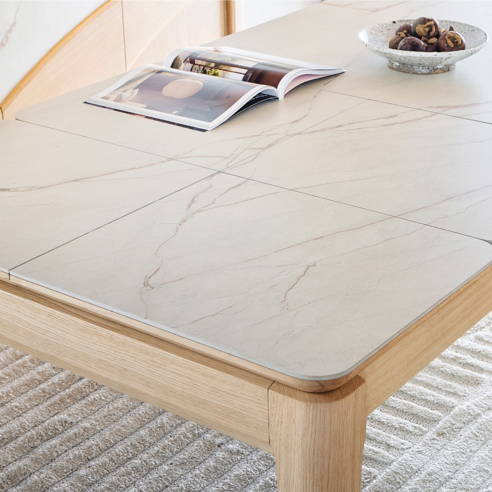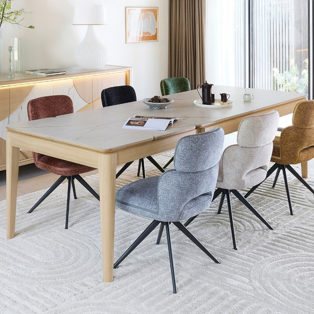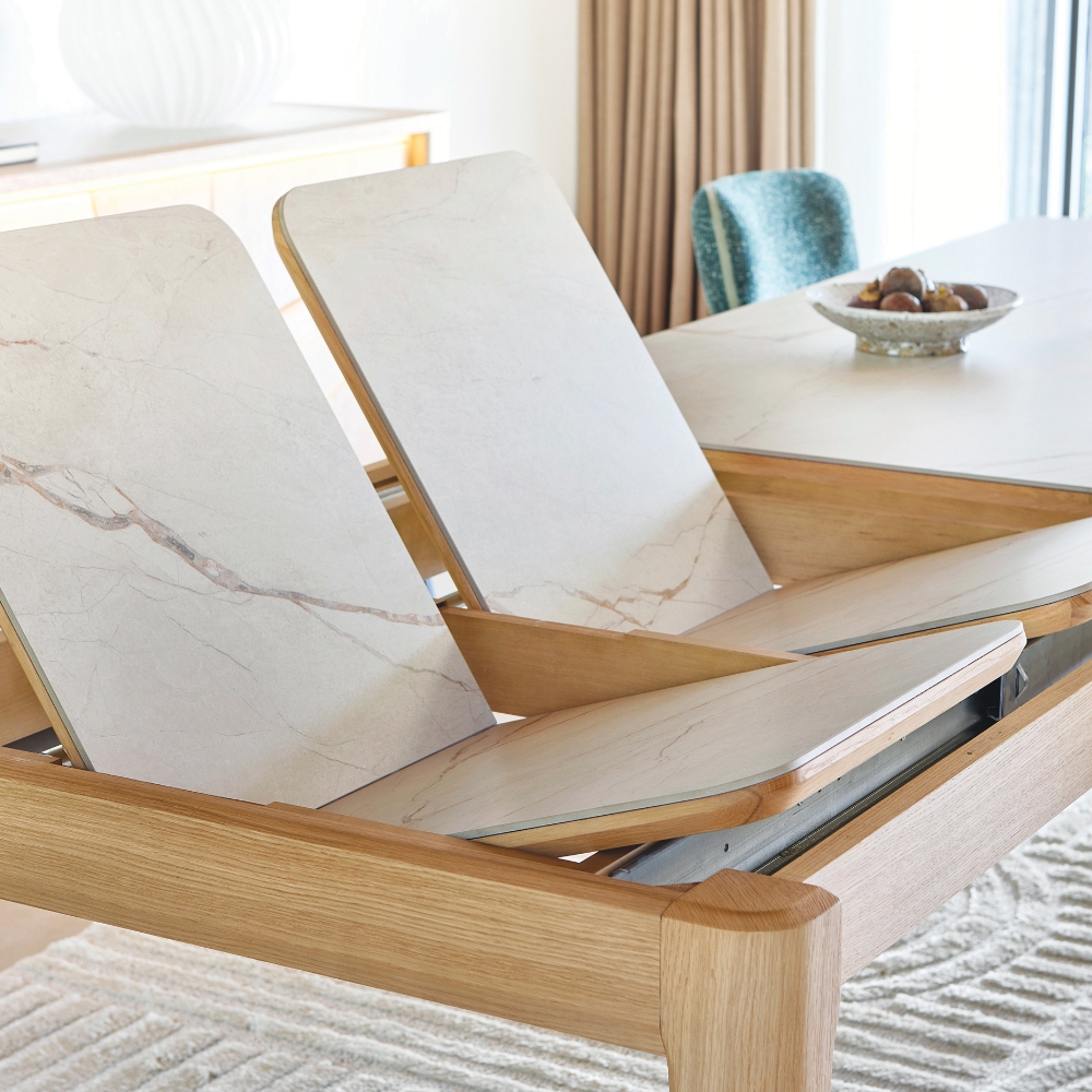 Pensée pour les moments conviviaux, la table de repas extensible RIVIERA s’adapte à toutes les occasions. Avec ses deux allonges en bout de 45 cm, elle peut atteindre 270 cm et accueillir confortablement 10 convives. Sa version plus compacte, dotée d’une allonge de 60 cm, passe de 160 à 220 cm, parfaite pour 8 personnes.