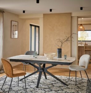 Du petit-déjeuner tranquille aux grands dîners de famille, la table ovale extensible NYMPHÉA se plie à tous vos besoins. Son secret ? Un look résolument moderne, une conception ingénieuse, et une capacité à se transformer en un clin d’œil ! Son plateau en céramique collée sur verre allie élégance, robustesse et facilité d’entretien, tandis que ses quatre finitions de céramique s’invitent dans tous les décors, du plus cosy au plus moderne. NYMPHÉA sait aussi se faire grande quand l’occasion l’exige. Deux allonges escamotables discrètement intégrées sous le plateau se déploient en un tour de main, grâce à un astucieux système rotatif : passez de 130 à 190 cm en toute fluidité, pour recevoir jusqu’à 8 convives dans une ambiance conviviale et design. Son piètement croisé, à la fois aérien et structuré, vient peaufiner son allure contemporaine. Et pour les plus grandes tablées ? NYMPHÉA existe aussi en 160 ou 180 cm extensible, pour accueillir respectivement jusqu’à 10 ou 12 invités !