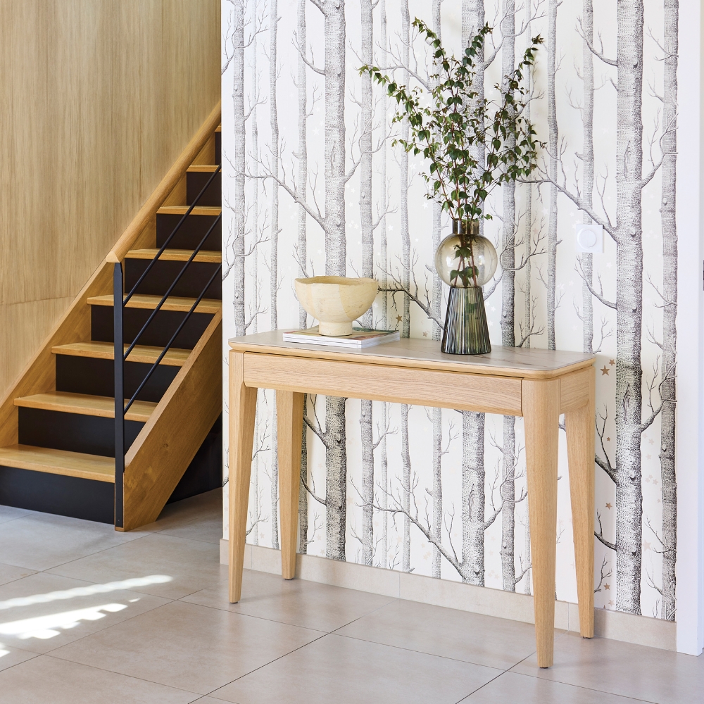 Compacte et graphique, la console RIVIERA dessine l’espace avec légèreté. Que ce soit dans l’entrée ou le séjour, elle accueille vos objets décoratifs et donne du souffle à votre intérieur.